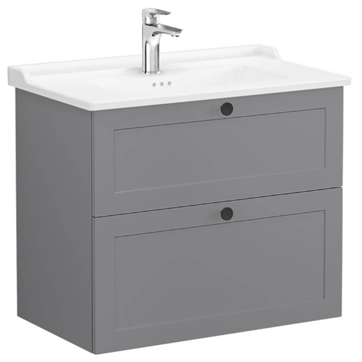 Unitate de baza lavoar baie, cu doua sertare 80cm, mat grey, cu classical lavoar / chiuveta baie | 68871 Matte gray, Colectia Root Classic Vitra