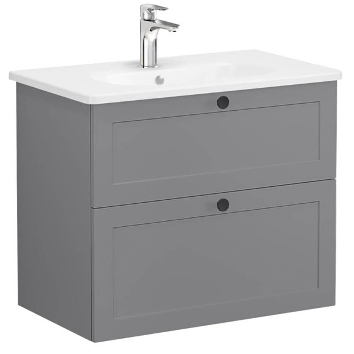 Unitate de baza lavoar baie, cu doua sertare 80cm, mat grey, cu rounded lavoar / chiuveta baie | 68864 Matte gray, Colectia Root Classic Vitra