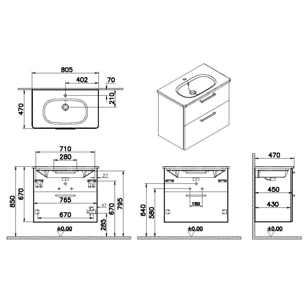 Descriere Calculată 1: Root, Vanity unit, 80 cm,two drawers