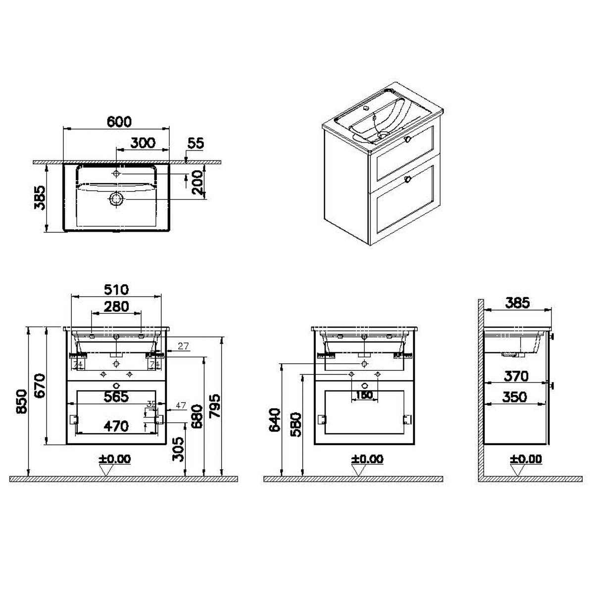 Descriere Calculată 1: Root Classic, Vanity unit, 60 cm, compact,two drawers