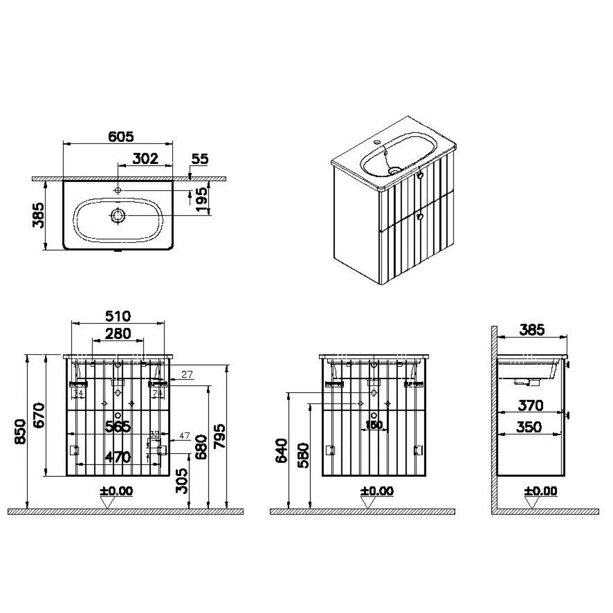 Descriere Calculată 1: Root Groove, Vanity unit, 60 cm, compact,two drawers