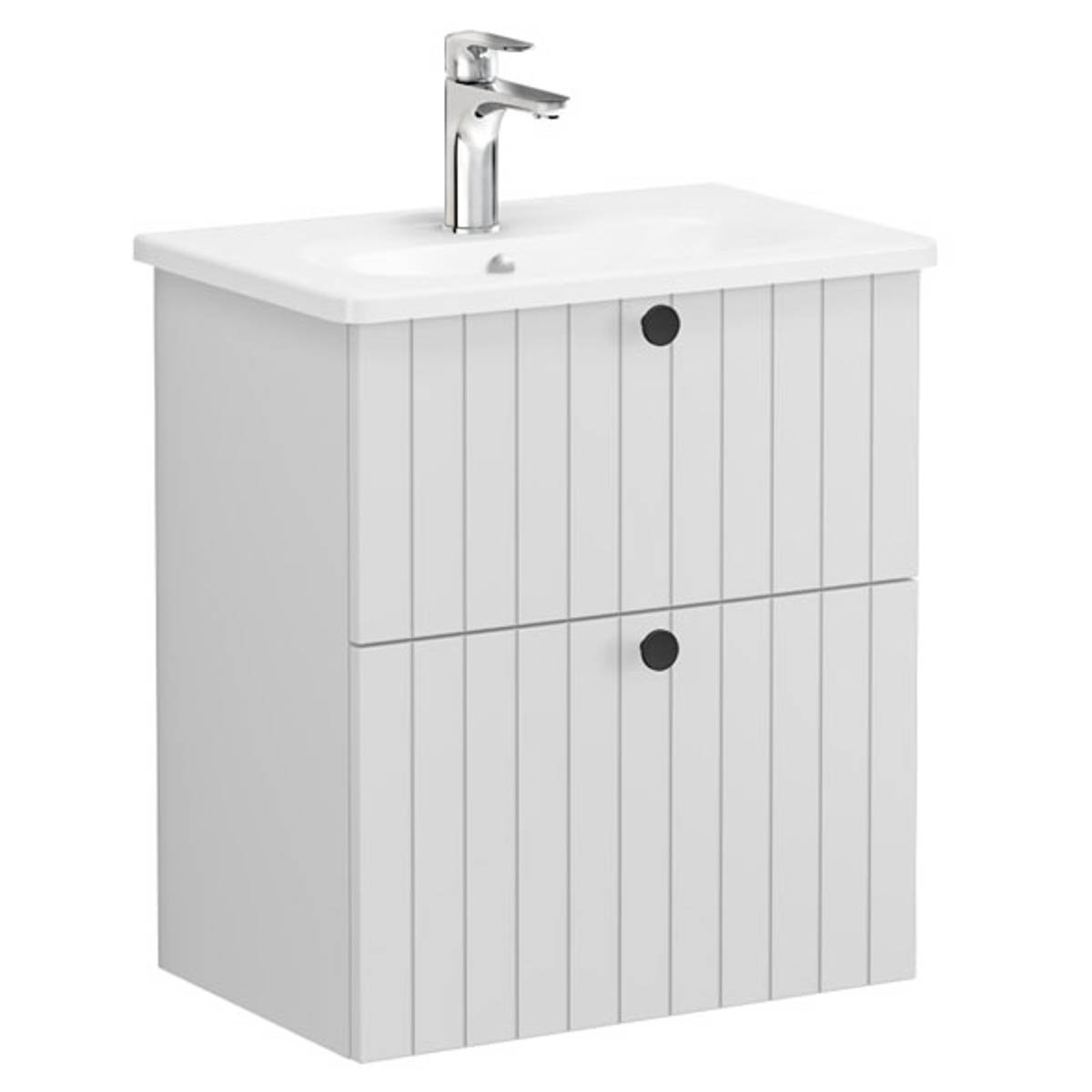 Root groove washbasin unit, with two drawers, compact, 60cm, matt light grey, with rounded washbasin