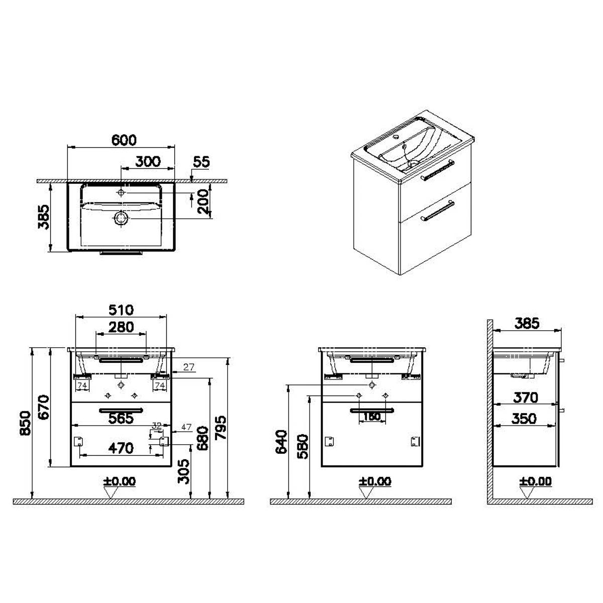 Descriere Calculată 1: Root, Vanity unit, 60 cm, compact,two drawers