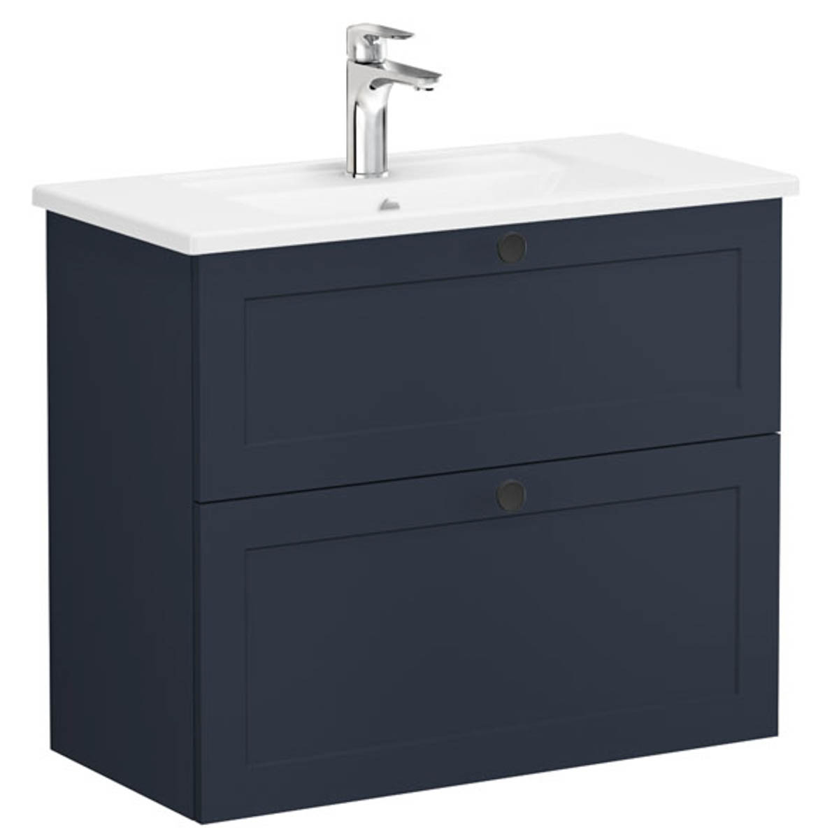 Unitate de baza lavoar baie, cu doua sertare, compact 80cm, mat dark albastru, cu angular lavoar / chiuveta baie | 68678 Matt Dark Blue, Colectia Root Classic Vitra