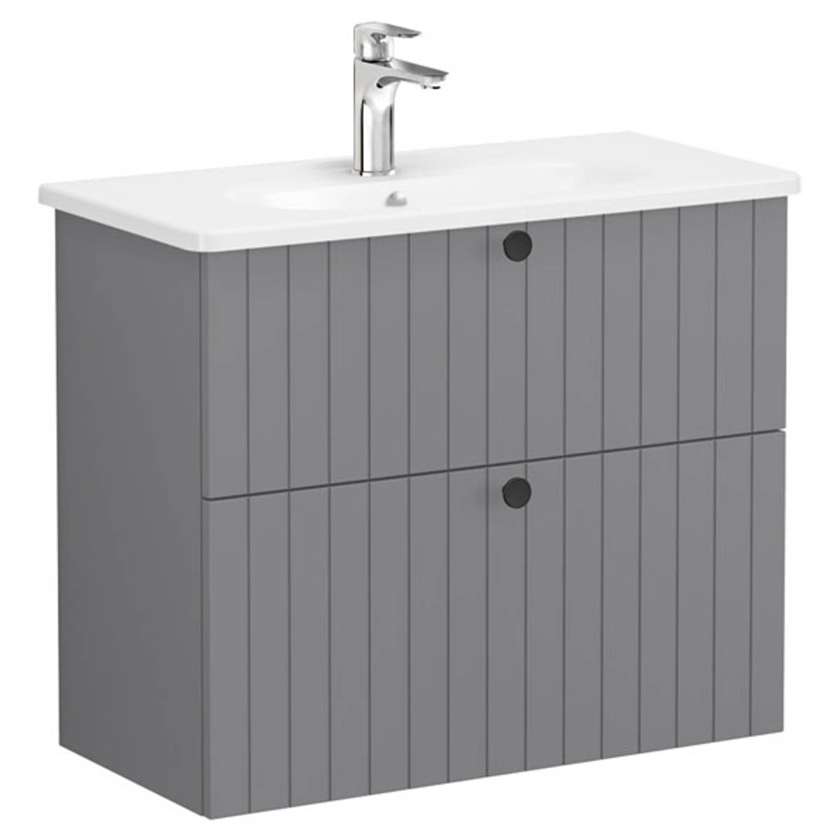 Unitate de baza lavoar baie, cu doua sertare, compact 80cm, mat grey, cu rounded lavoar / chiuveta baie | 69256 Matte gray, Colectia Root Groove Vitra