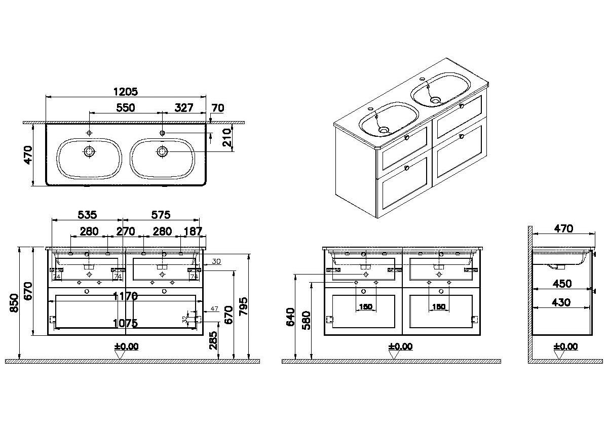 Descriere Calculată 1: Root Classic, Vanity unit, 120 cm,four drawers