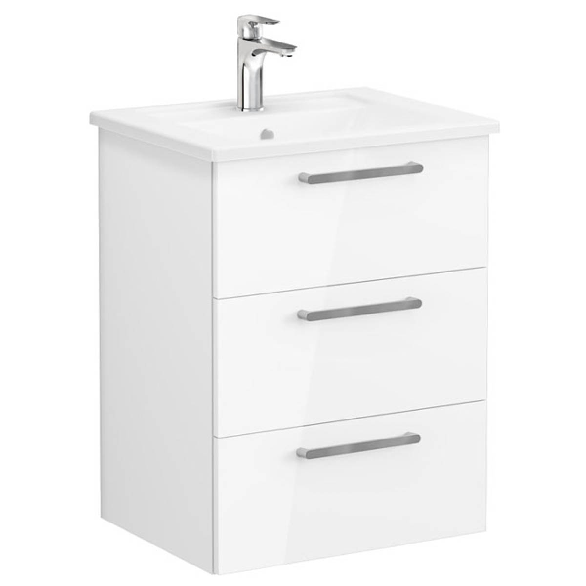 Unitate de baza lavoar baie, cu trei sertare 60cm inalt gloss alb, cu angular lavoar / chiuveta baie | 66462 Glossy white, Colectia Root Flat Vitra