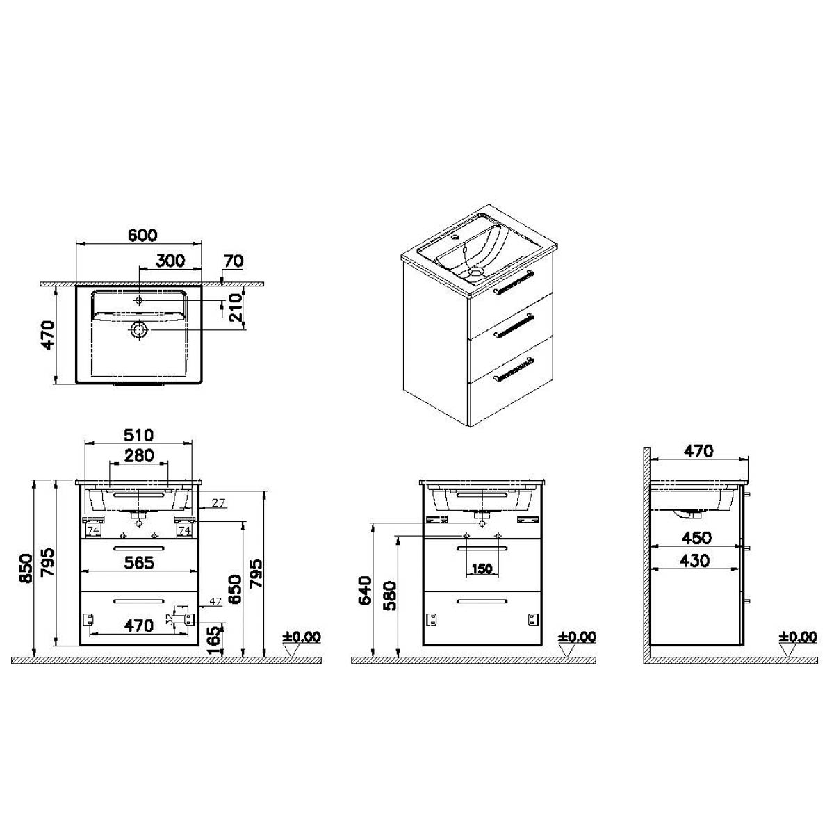 Descriere Calculată 1: Root, Vanity unit, 60 cm,three drawers