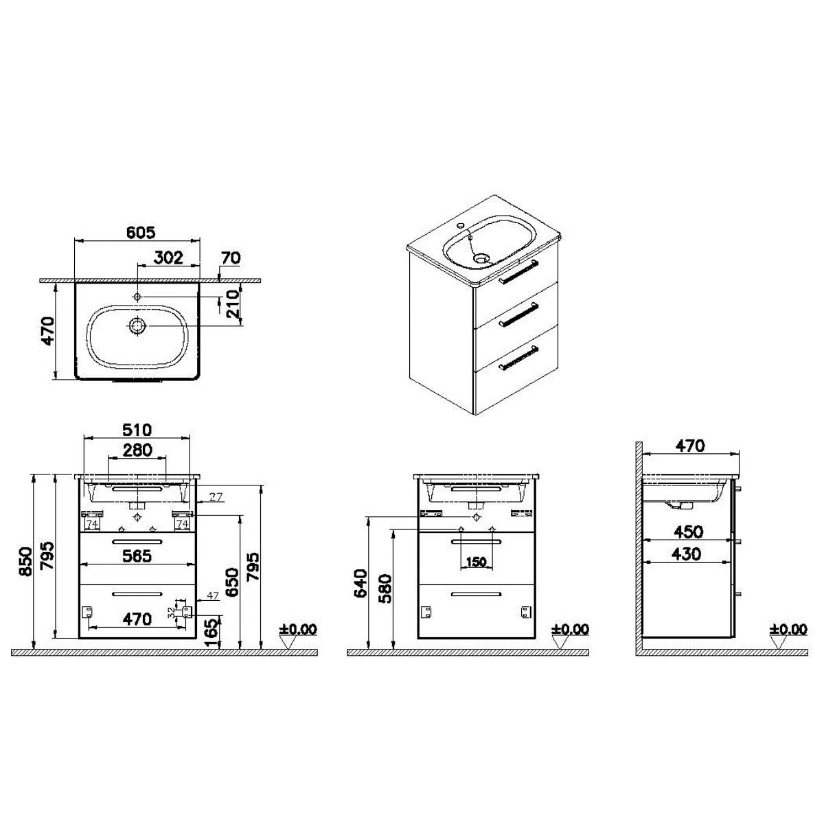Descriere Calculată 1: Root, Vanity unit, 60 cm,three drawers