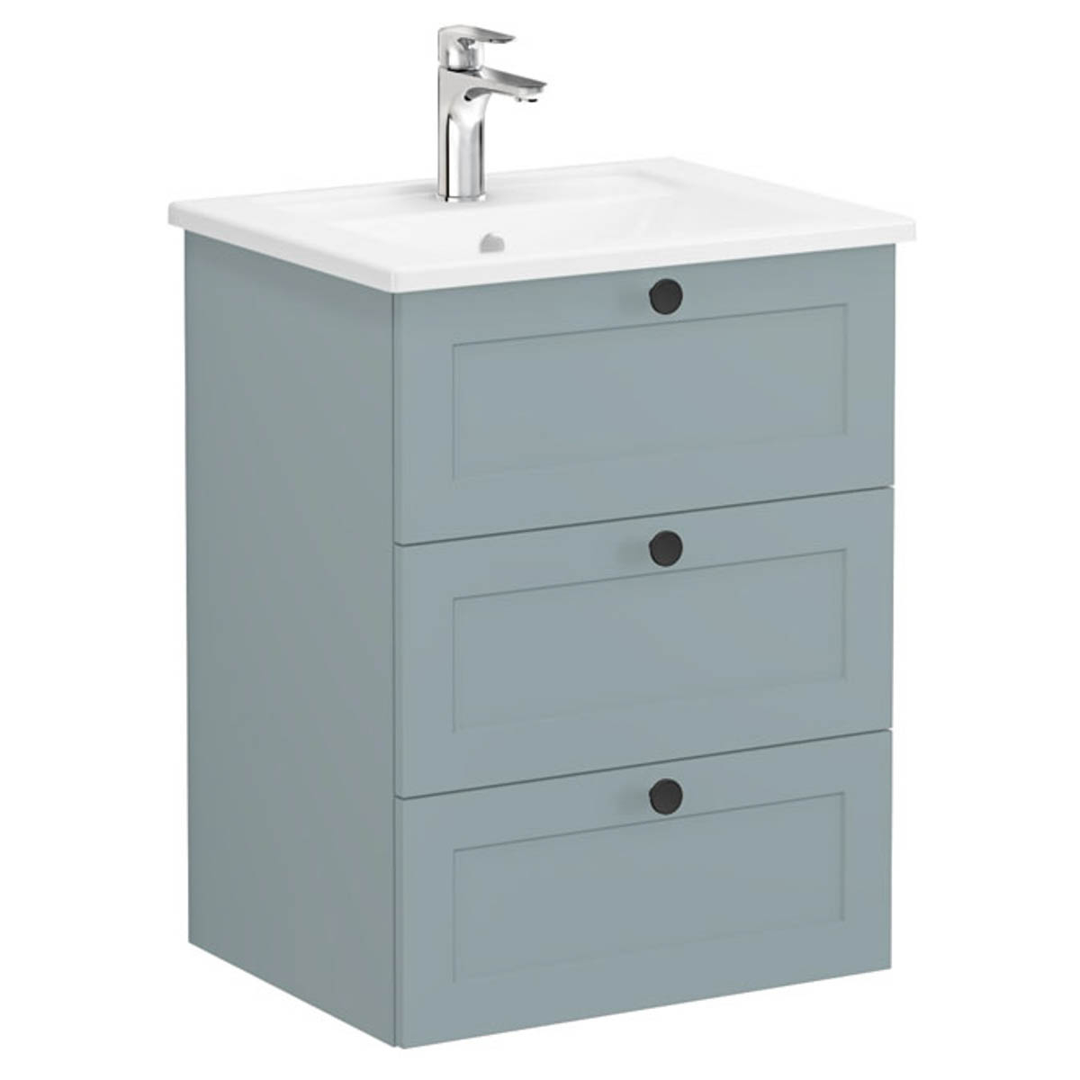 Unitate de baza lavoar baie, cu trei sertare 60cm mat fijord green, cu angular lavoar / chiuveta baie | 68900 Matte Fiyord Green, Colectia Root Classic Vitra