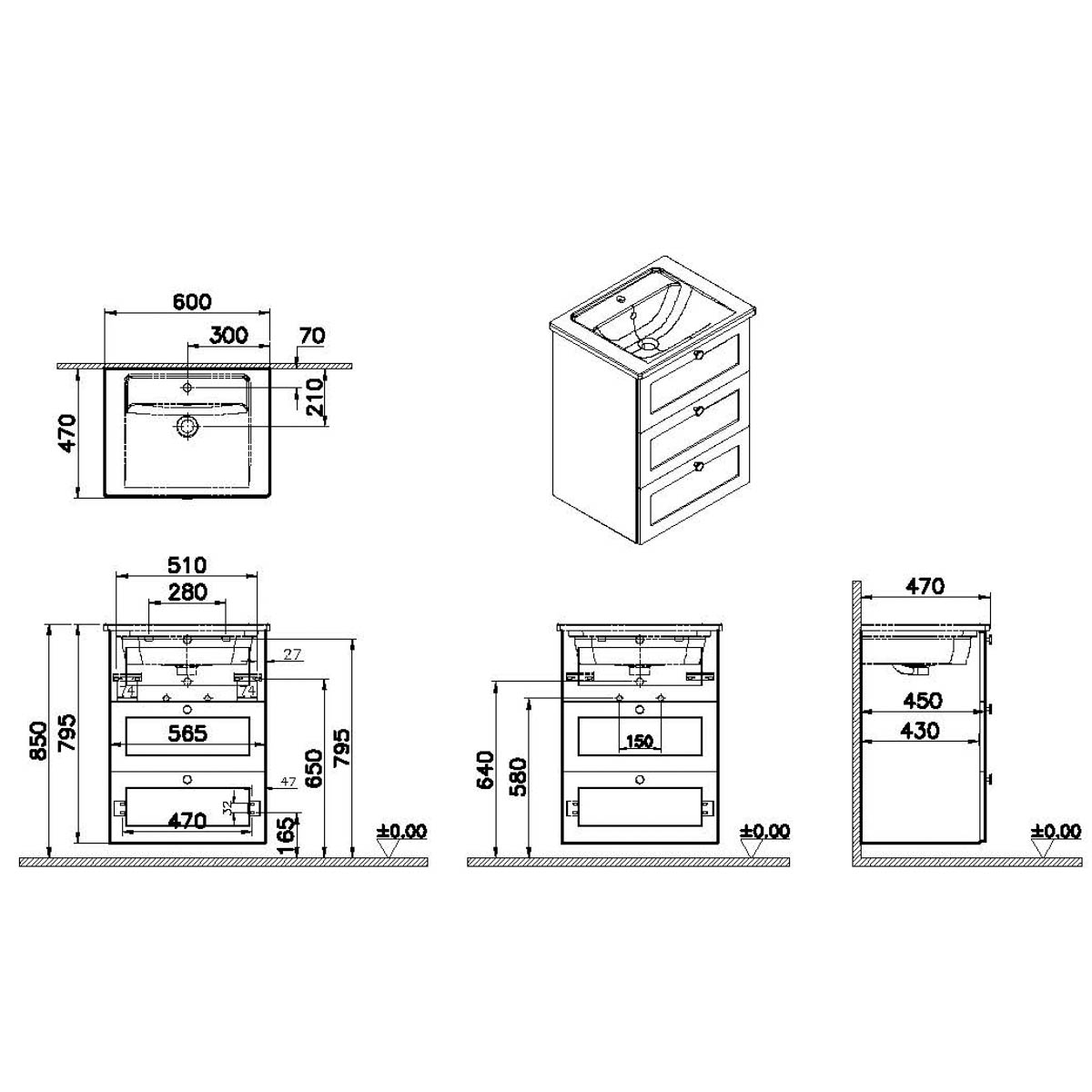 Descriere Calculată 1: Root Classic, Vanity unit, 60 cm,three drawers