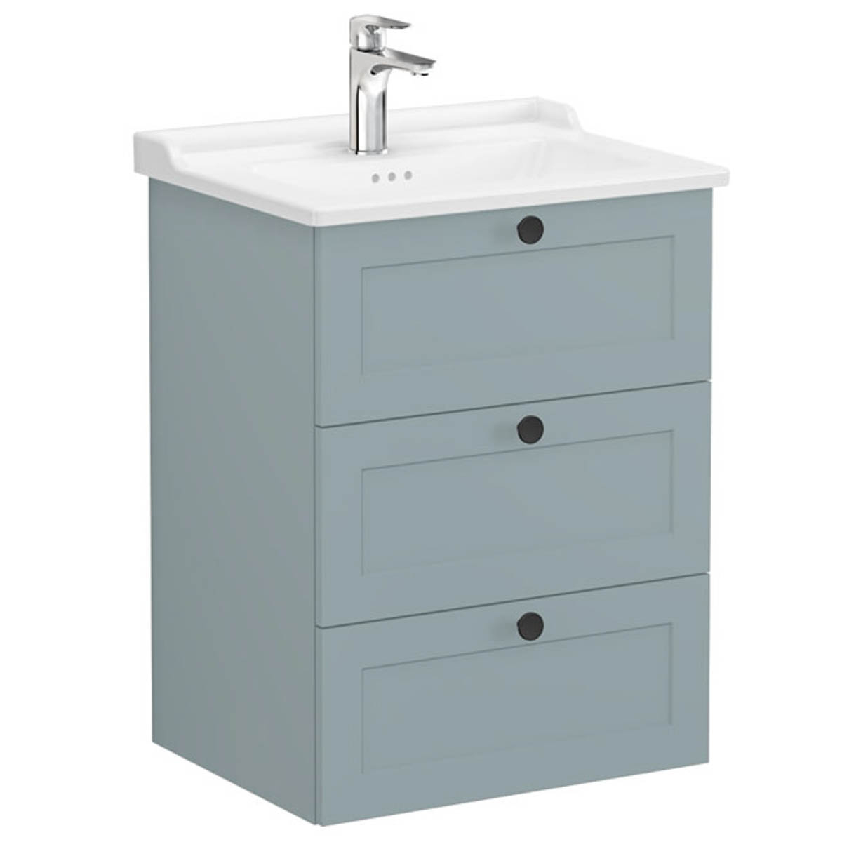 Vitra Unitate de baza lavoar baie, cu trei sertare 60cm mat fijord green, cu classical lavoar / chiuveta baie | 68914 Matte Fiyord Green, Colectia Root Classic Vitra