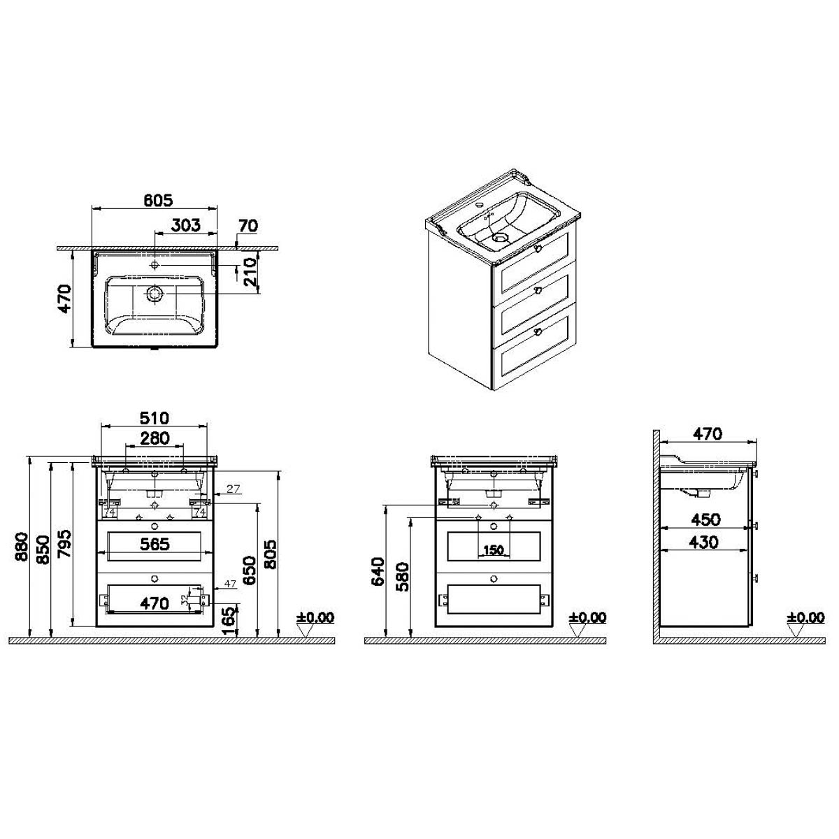 Descriere Calculată 1: Root Classic, Vanity unit, 60 cm,three drawers