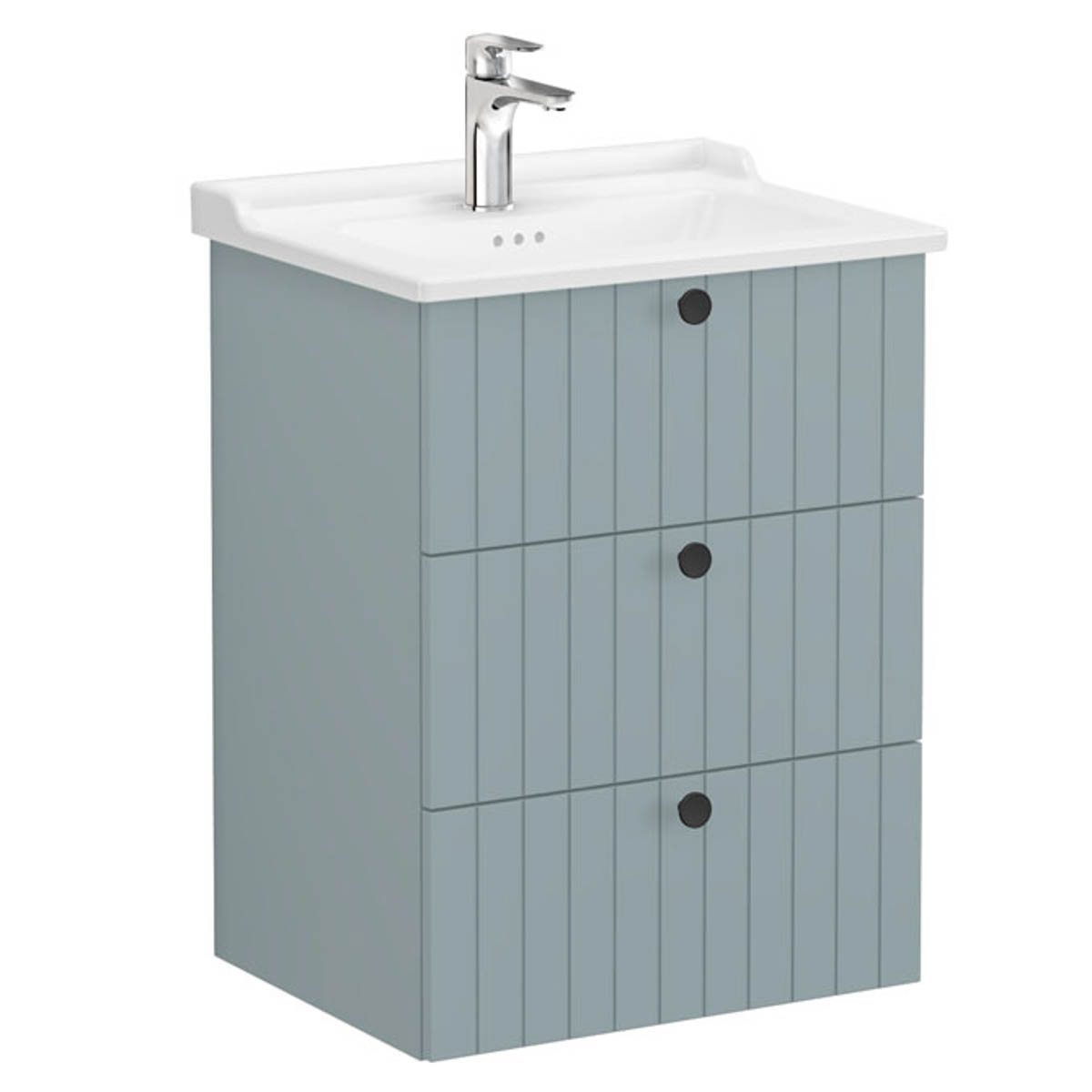 Unitate de baza lavoar baie, cu trei sertare 60cm mat fijord green, cu classical lavoar / chiuveta baie | 69488 Matte Fiyord Green, Colectia Root Groove Vitra