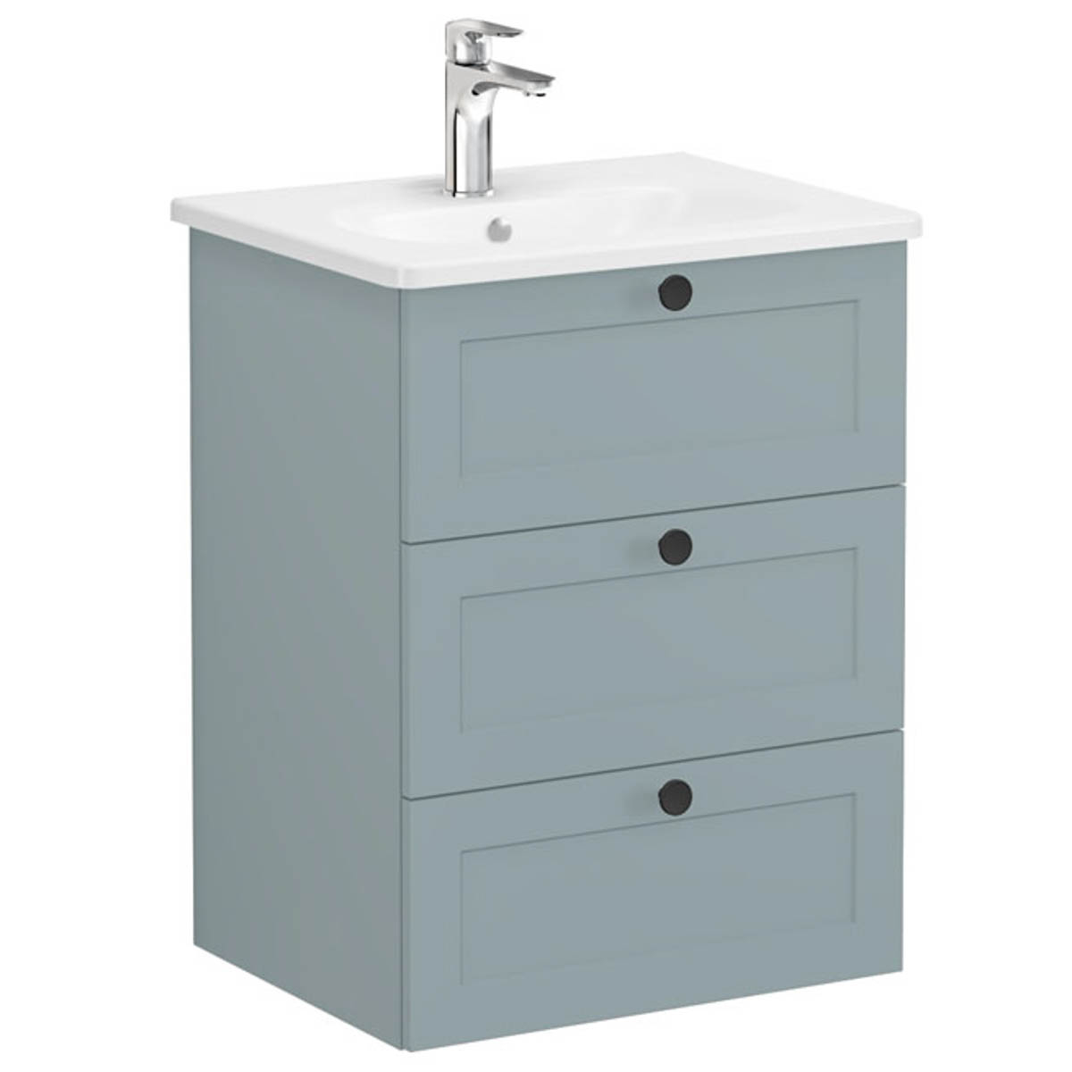 Unitate de baza lavoar baie, cu trei sertare 60cm mat fijord green, cu rounded lavoar / chiuveta baie | 68907 Matte Fiyord Green, Colectia Root Classic Vitra