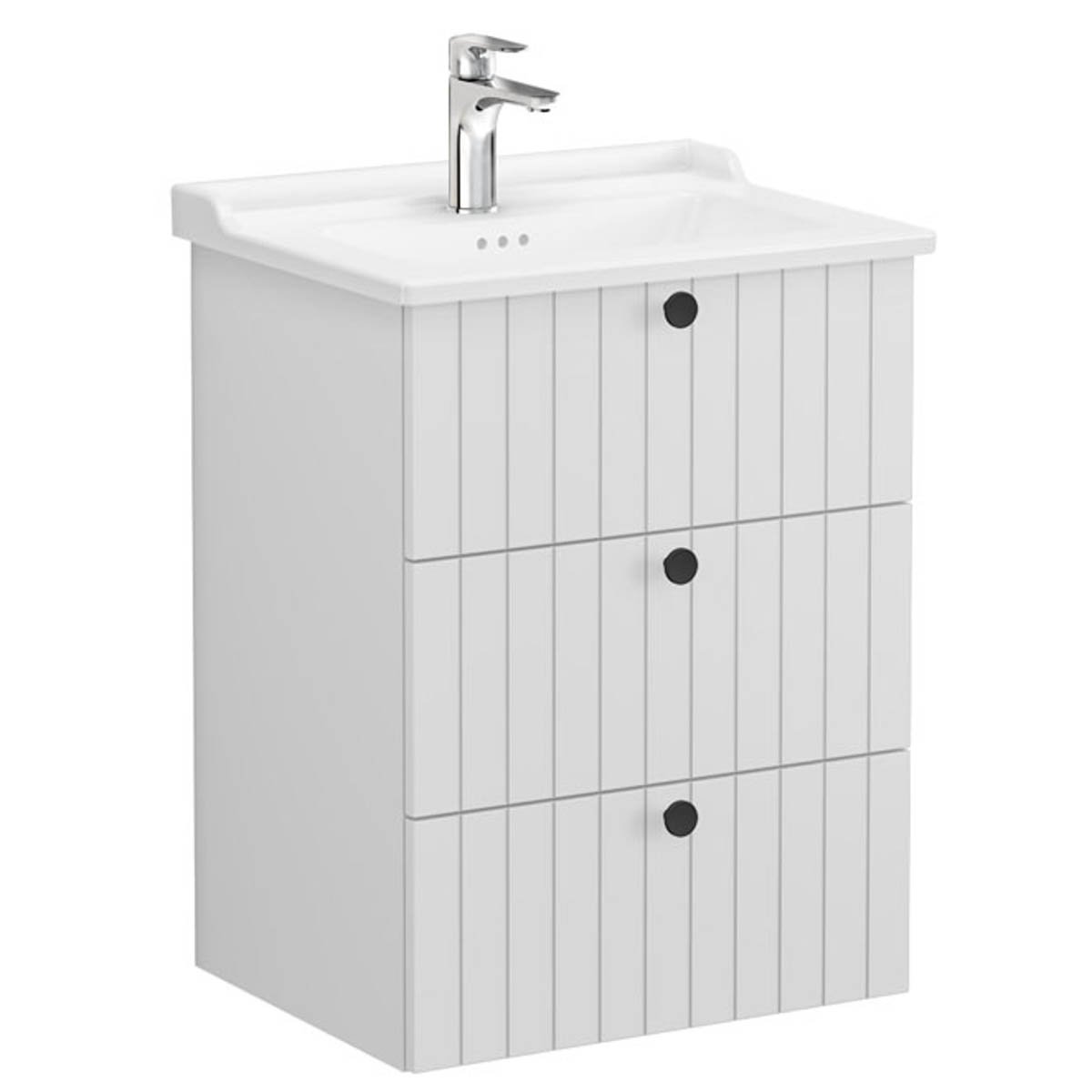 Vitra Unitate de baza lavoar baie, cu trei sertare 60cm mat gri deschis, cu classical lavoar / chiuveta baie | 69486 Matte Light Grey, Colectia Root Groove Vitra