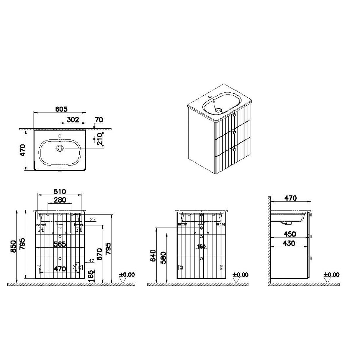 Descriere Calculată 1: Root Groove, Vanity unit, 60 cm,three drawers