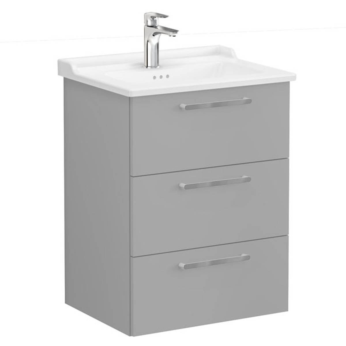 Unitate de baza lavoar baie, cu trei sertare 60cm mat rock grey, cu classical lavoar / chiuveta baie | 68345 Matt Rock Grey, Colectia Root Flat Vitra
