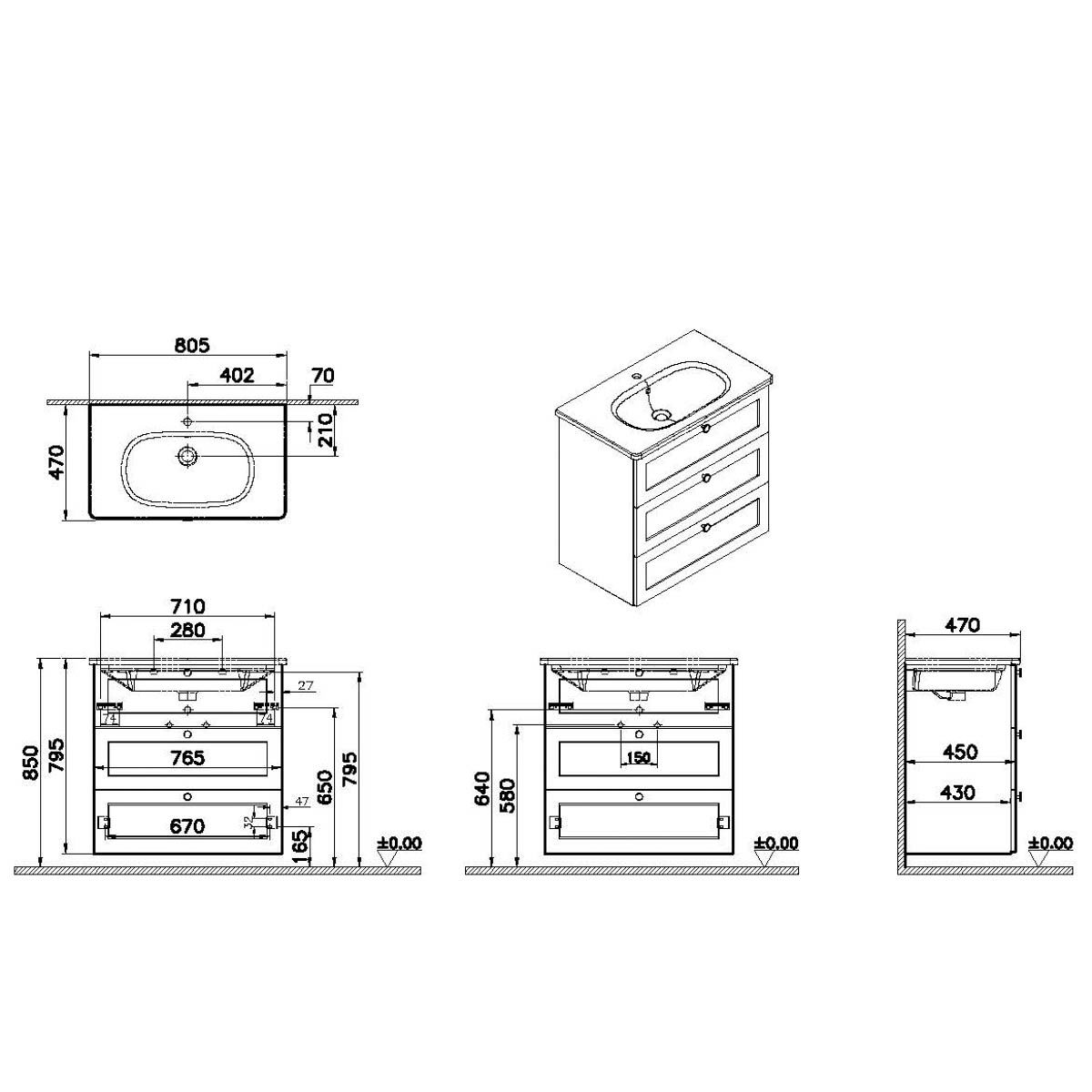 Descriere Calculată 1: Root Classic, Vanity unit, 80 cm,three drawers