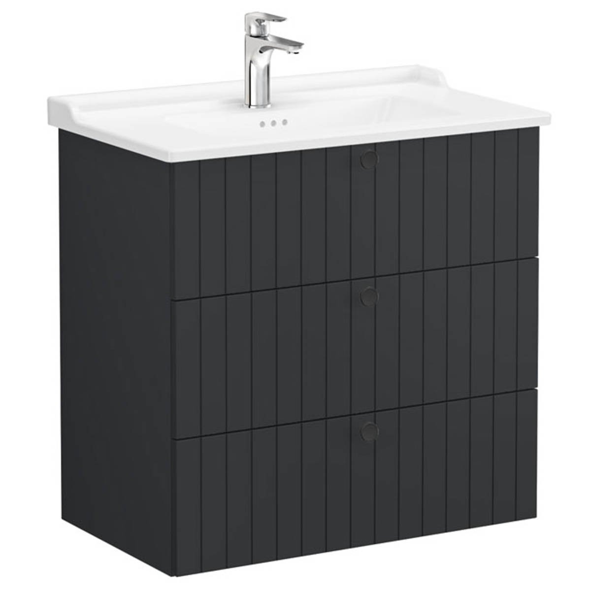 Unitate de baza lavoar baie, cu trei sertare 80cm, mat graphite, cu classical lavoar / chiuveta baie | 69510 Matt graphite, Colectia Root Groove Vitra