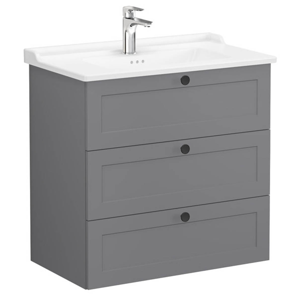 Unitate de baza lavoar baie, cu trei sertare 80cm, mat grey, cu classical lavoar / chiuveta baie | 68934 Matte gray, Colectia Root Classic Vitra
