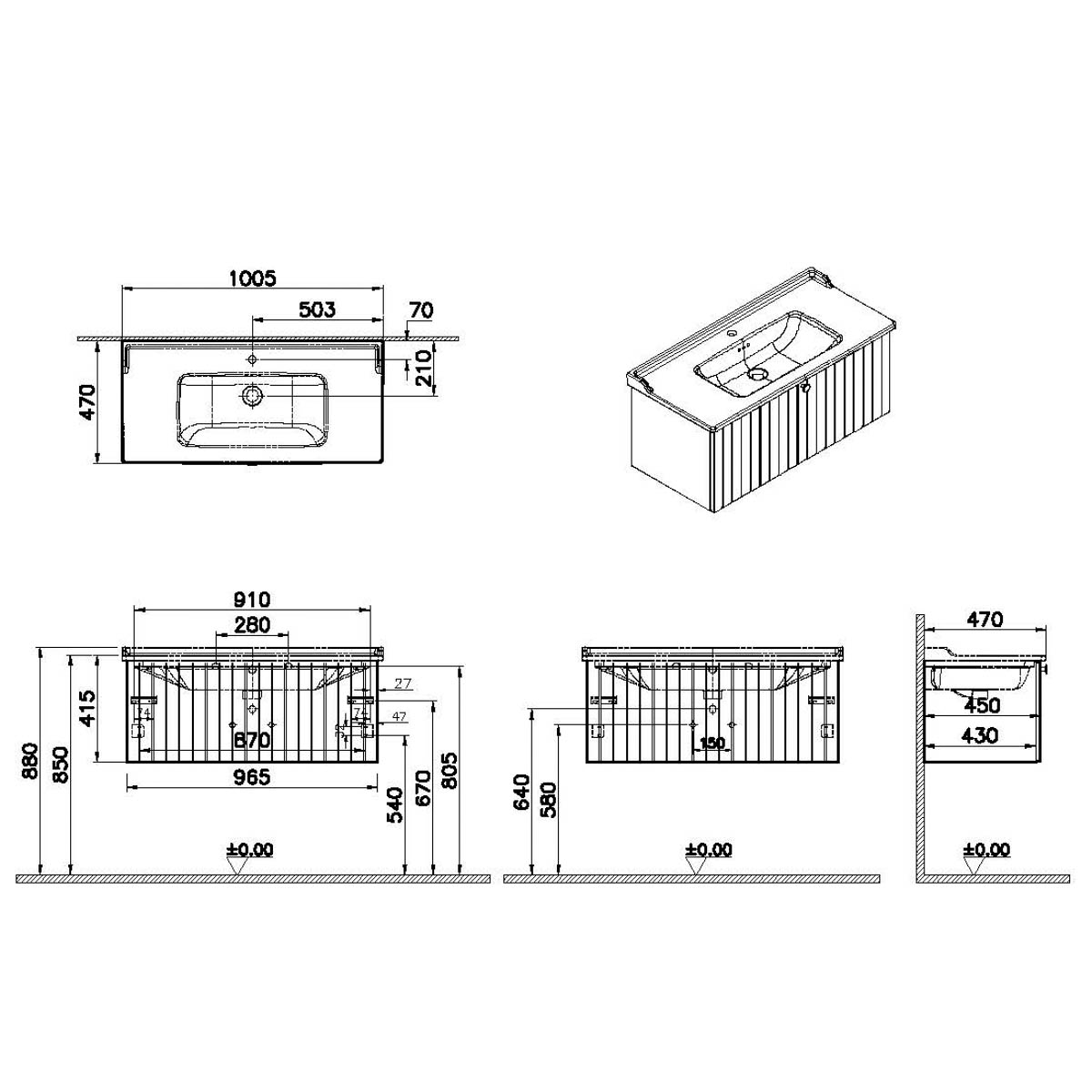 Descriere Calculată 1: Root Groove, Vanity unit, 100 cm,one drawer