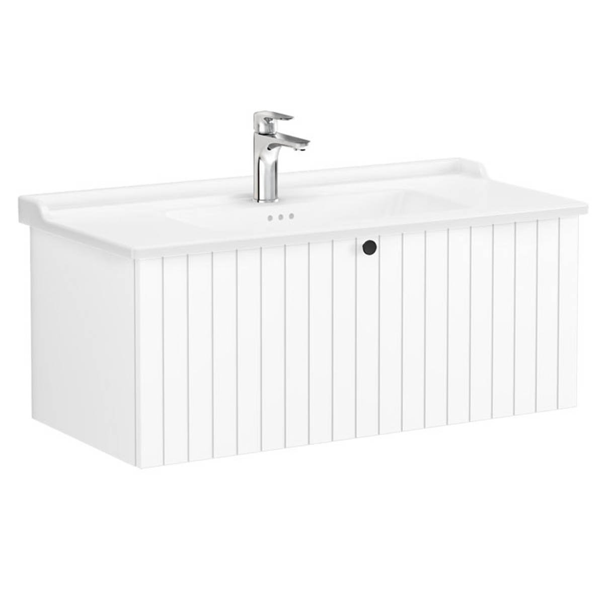 Unitate de baza lavoar baie, cu un sertar 100cm, alb mat, cu classical lavoar / chiuveta baie | 69401 Matt white, Colectia Root Groove Vitra