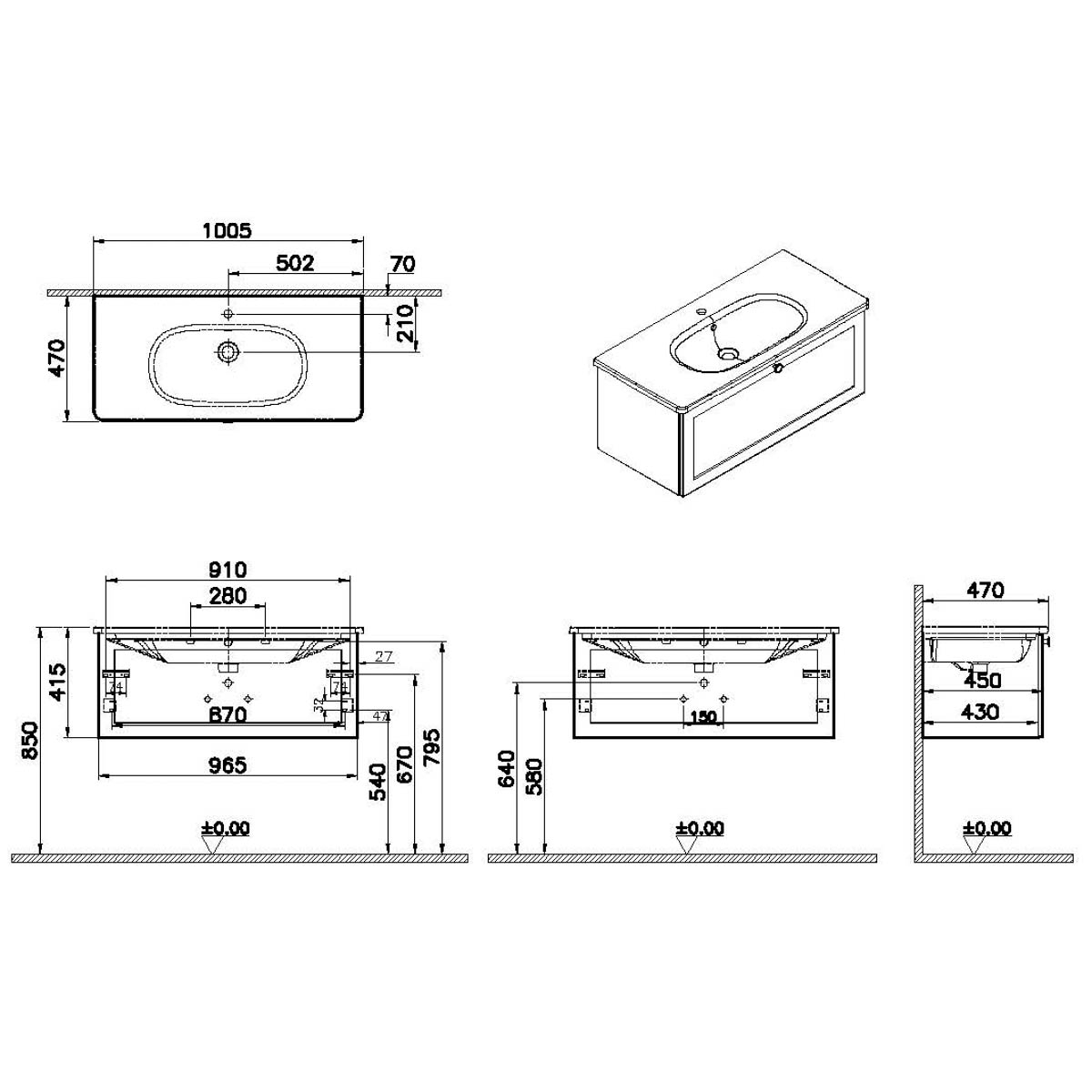 Descriere Calculată 1: Root Classic, Vanity unit, 100 cm,one drawer