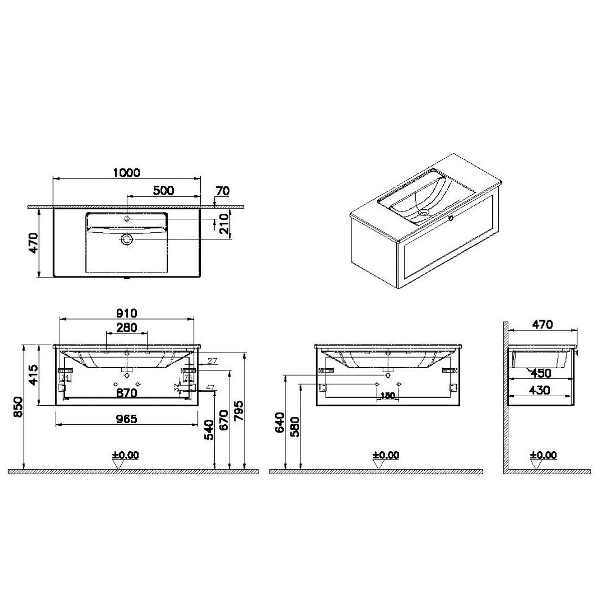 Descriere Calculată 1: Root Classic, Vanity unit, 100 cm,one drawer