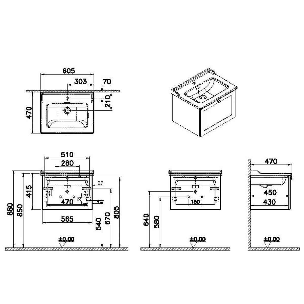 Descriere Calculată 1: Root Classic, Vanity unit, 60 cm,one drawer