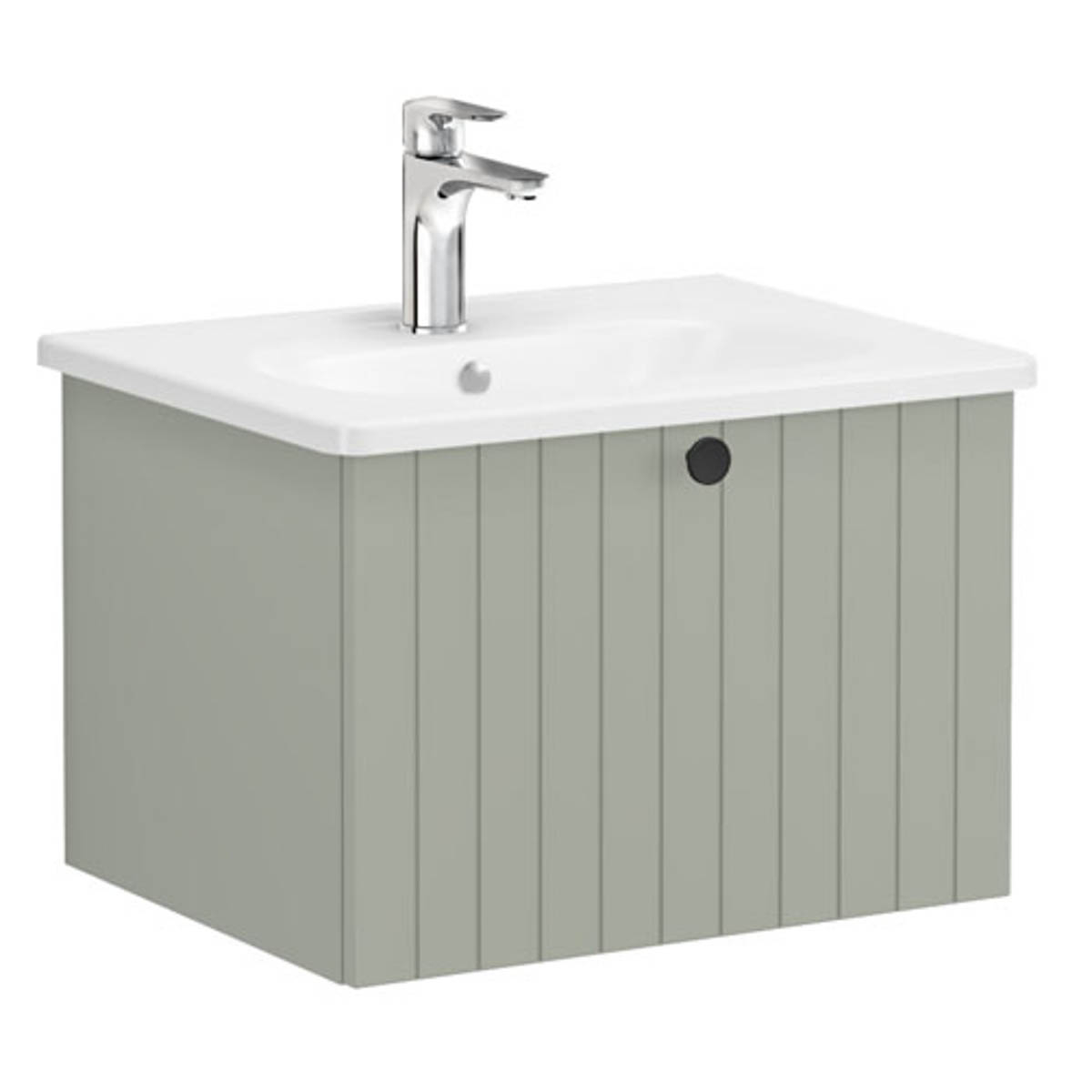 Unitate de baza lavoar baie, cu un sertar 60cm mat retro green, cu rounded lavoar / chiuveta baie | 69358 Matt Retro Green, Colectia Root Groove Vitra