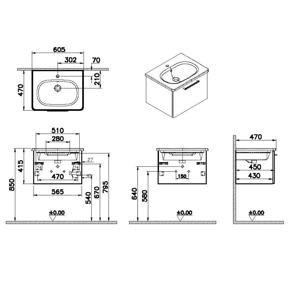 Descriere Calculată 1: Root, Vanity unit, 60 cm,one drawer