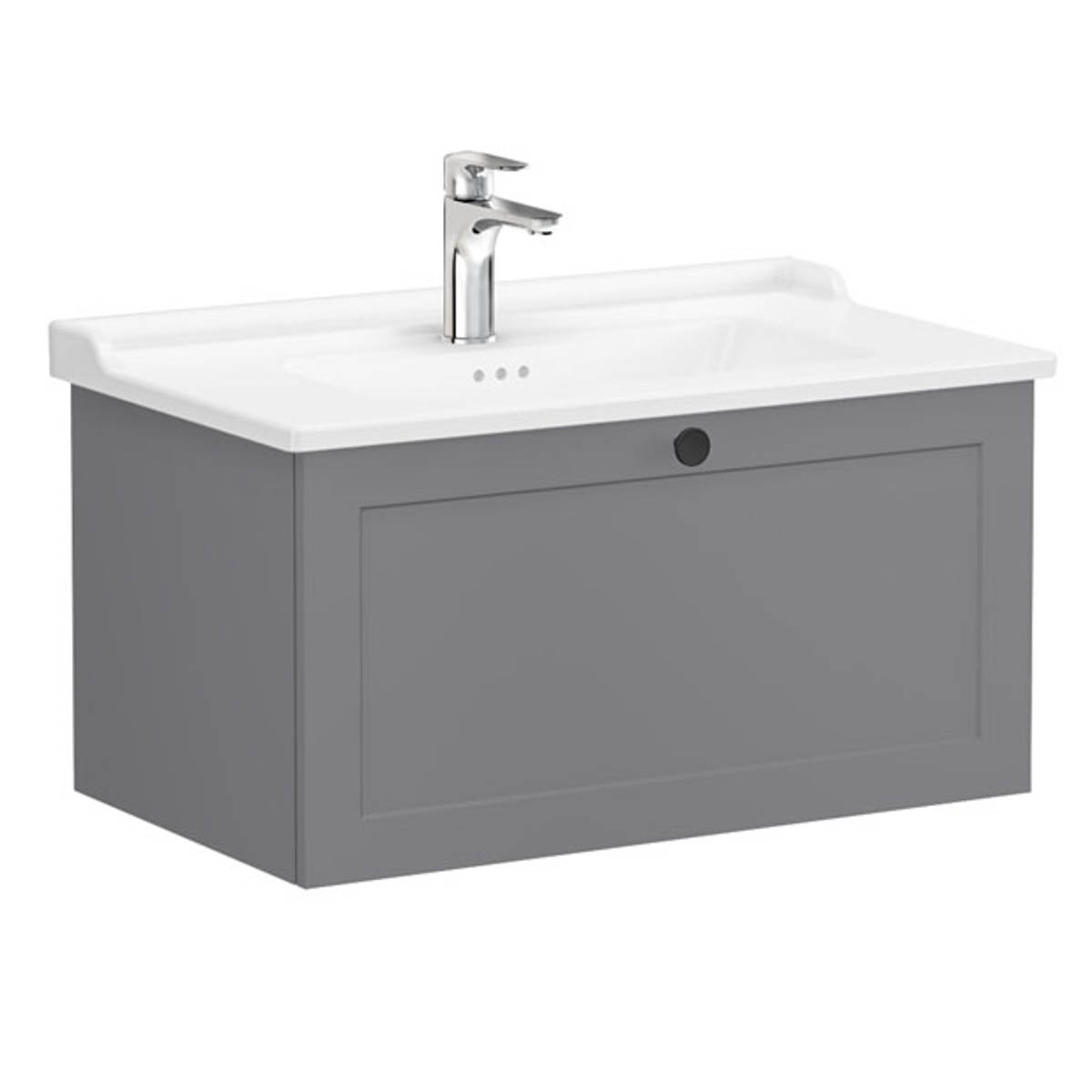 Unitate de baza lavoar baie, cu un sertar 80cm, mat grey, cu classical lavoar / chiuveta baie | 68808 Matte gray, Colectia Root Classic Vitra
