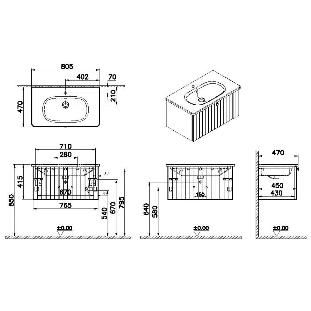Descriere Calculată 1: Root Groove, Vanity unit, 80 cm,one drawer
