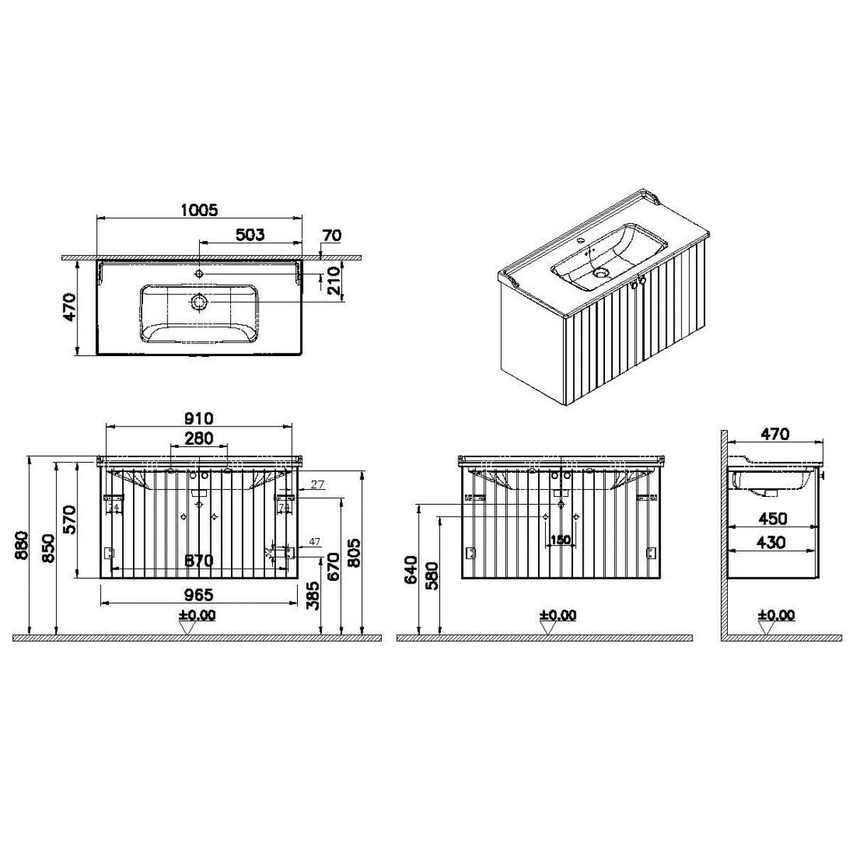 Descriere Calculată 1: Root Groove, Vanity unit, 100 cm,w/doors