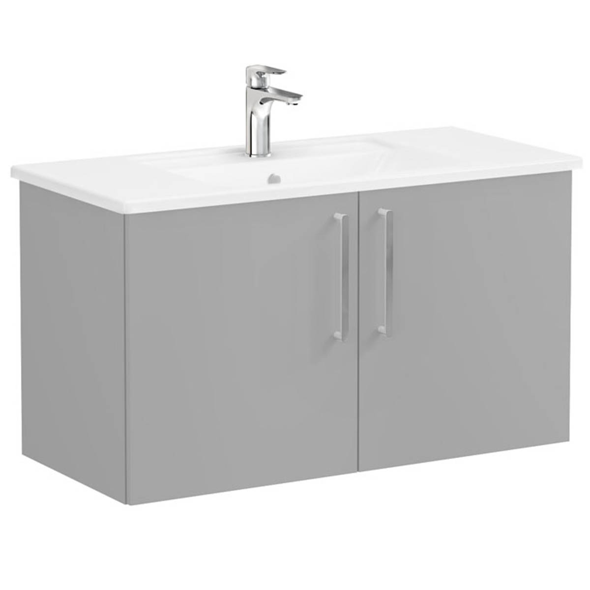Unitate de baza lavoar baie, cu usi 100cm, mat rock grey, cu angular lavoar / chiuveta baie | 68166 Matt Rock Grey, Colectia Root Flat Vitra