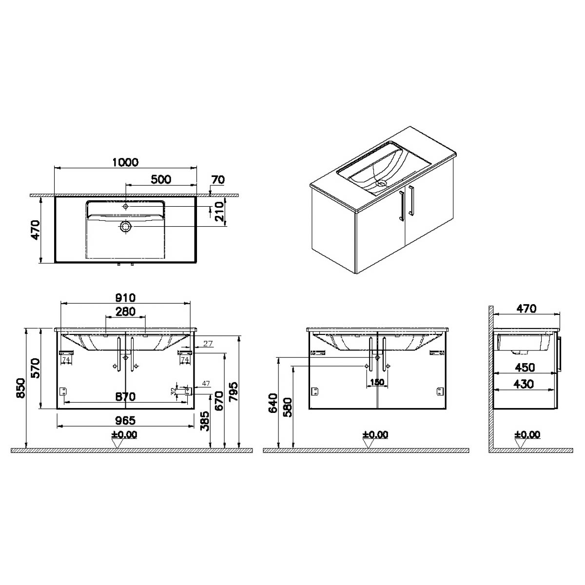 Descriere Calculată 1: Root, Vanity unit, 100 cm,w/doors