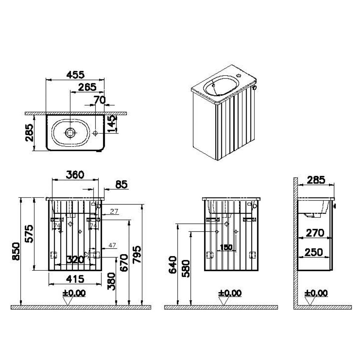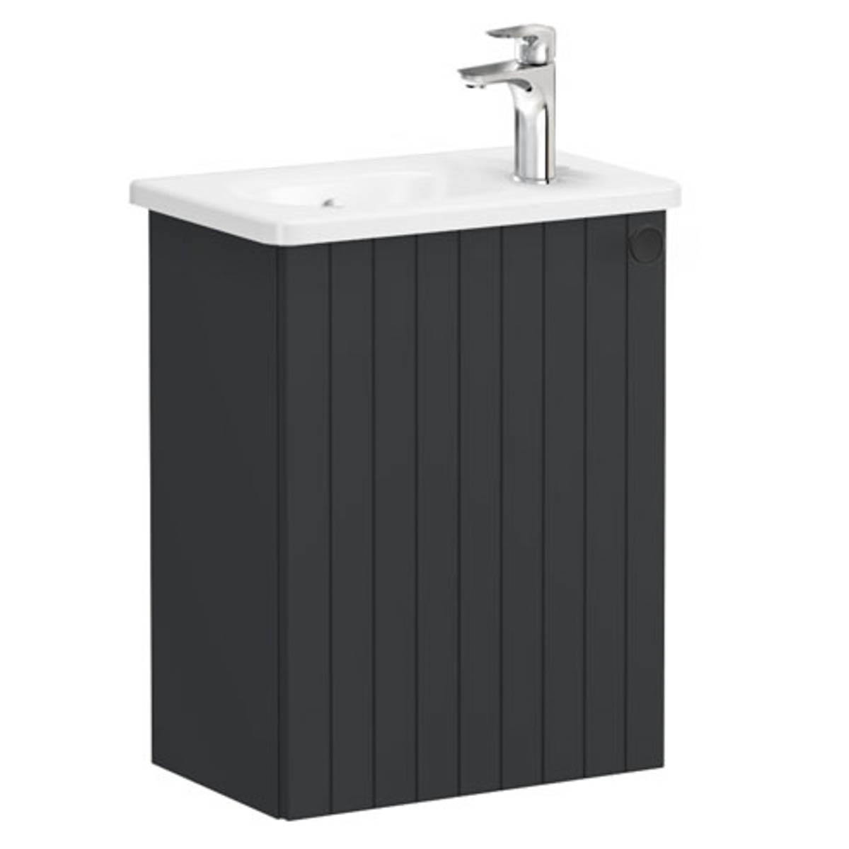 Unitate de baza lavoar baie, cu usi, 45cm, compact, cu dreapta orificiu pentru baterie, mat graphite, cu rounded lavoar / chiuveta baie stanga | 69195 Matt graphite, Colectia Root Groove Vitra