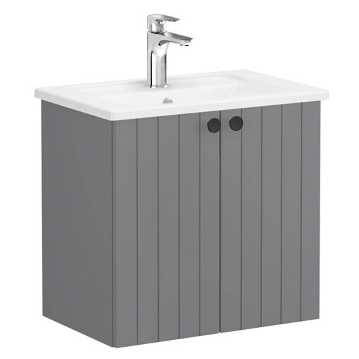 Root groove washbasin unit, with doors, 60cm, compact, matt grey, with angular washbasin