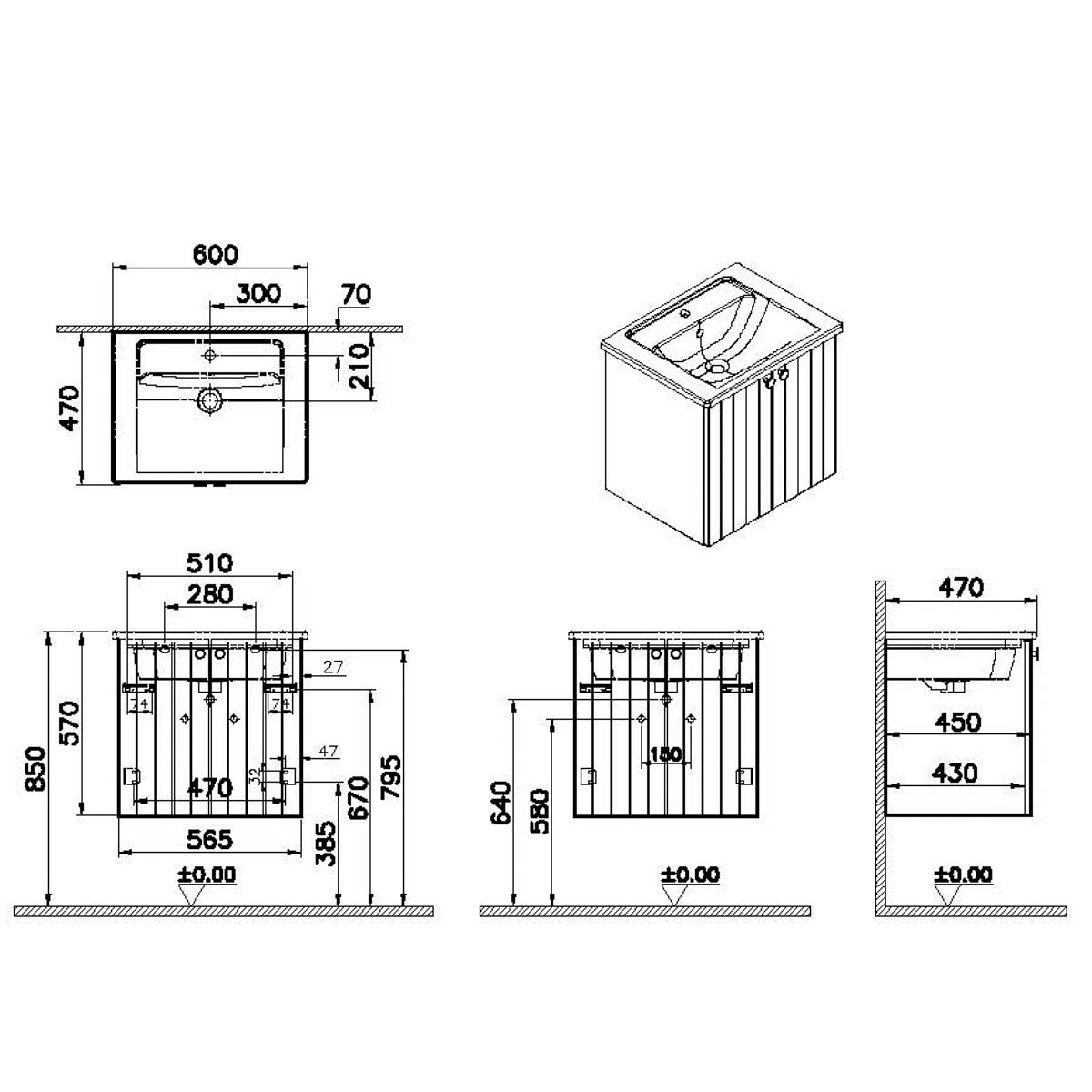 Unitate de baza lavoar baie, cu usi 60cm mat graphite, cu angular lavoar / chiuveta baie