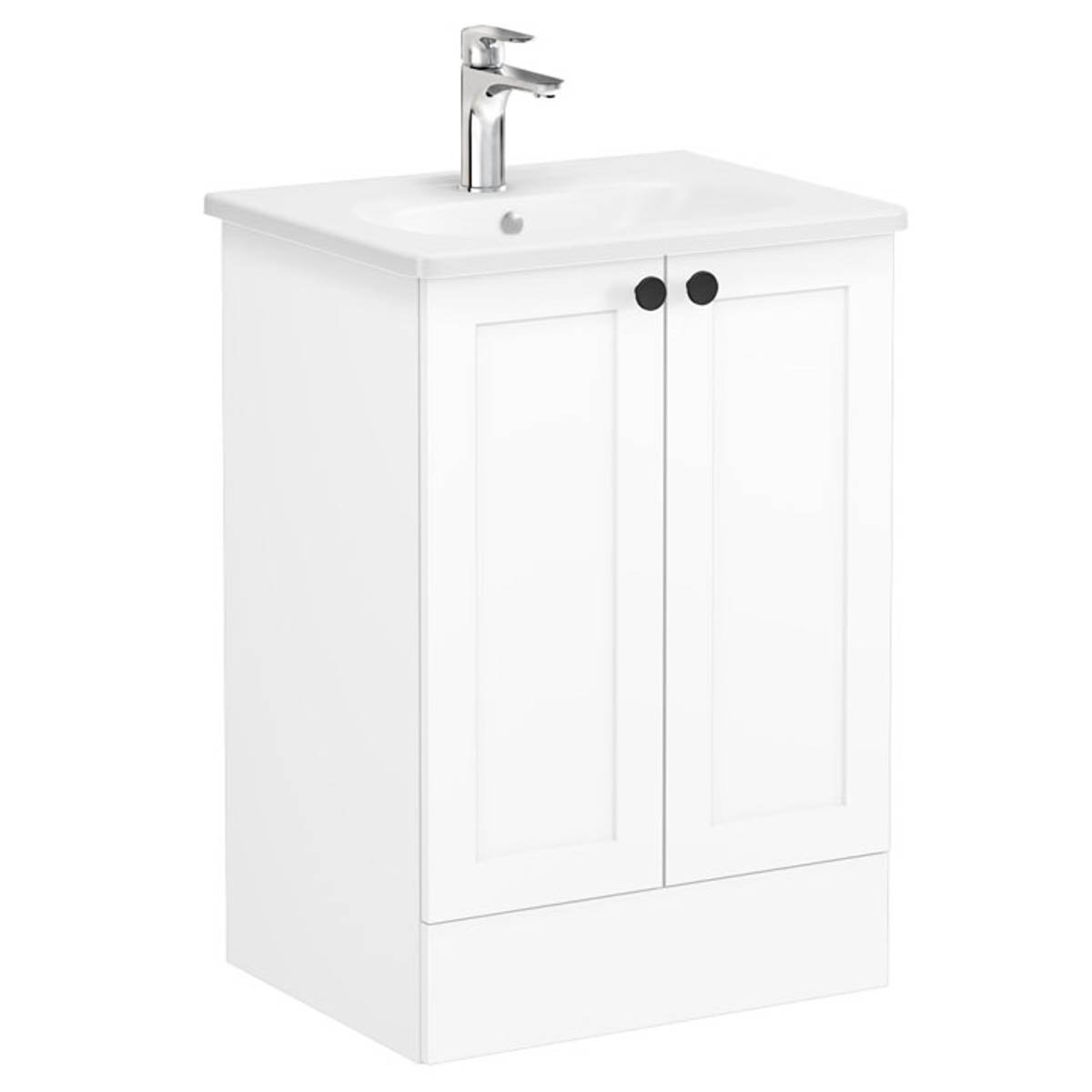 Root classic washbasin unit, with doors, 60cm, floor standing, matt white, with rounded washbasin
