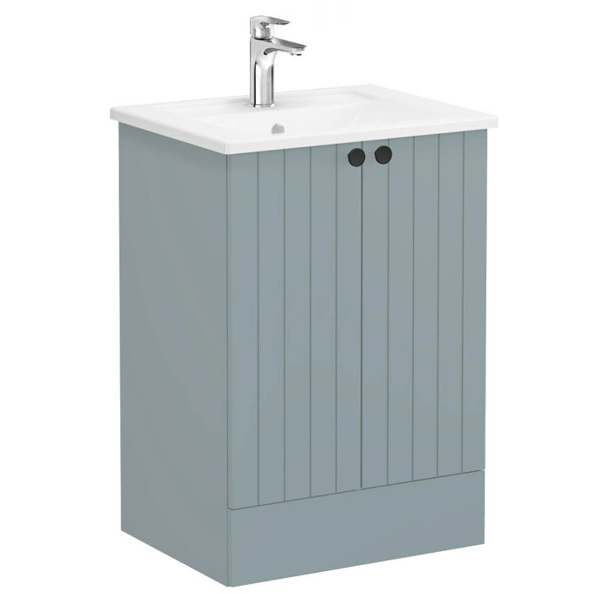 Root groove washbasin unit, with doors, 60cm, floor standing, matt fijord green, with angular washbasin