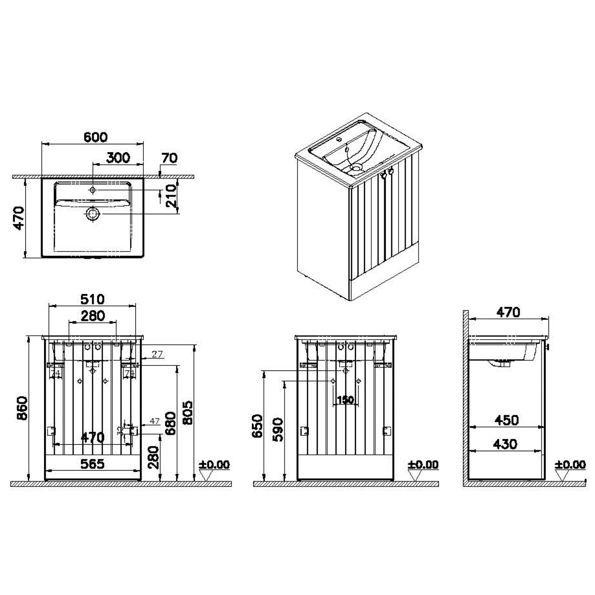 Descriere Calculată 1: Root Groove, Vanity unit, 60 cm,w/doors, floor standing