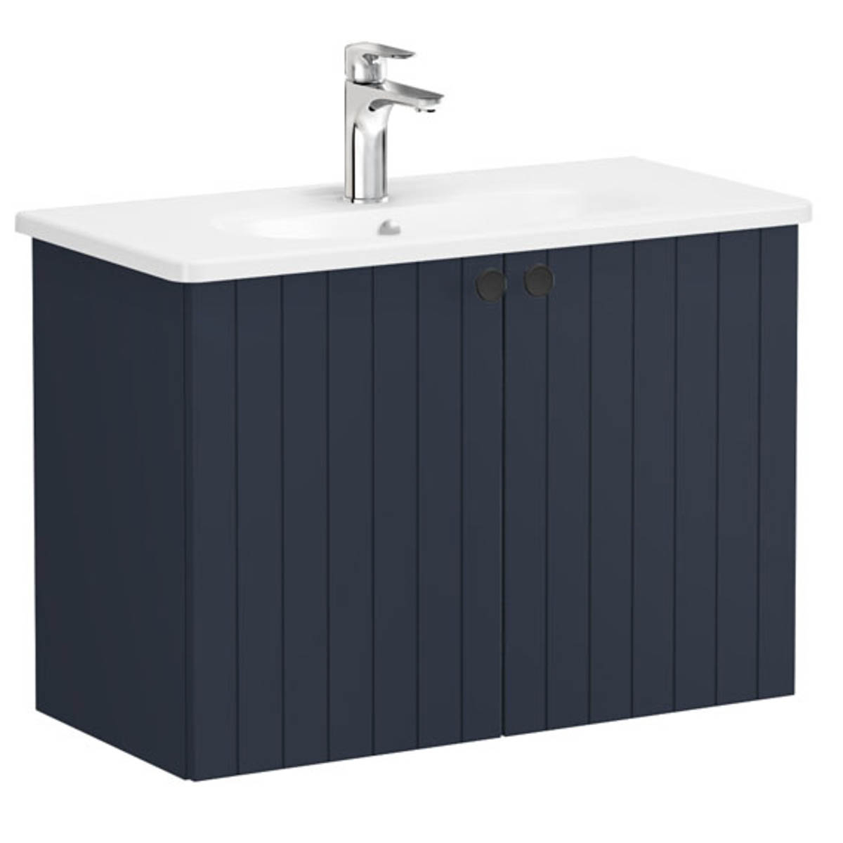 Unitate de baza lavoar baie, cu usi 80cm, compact, mat dark albastru, cu rounded lavoar / chiuveta baie | 69231 Matt Dark Blue, Colectia Root Groove Vitra