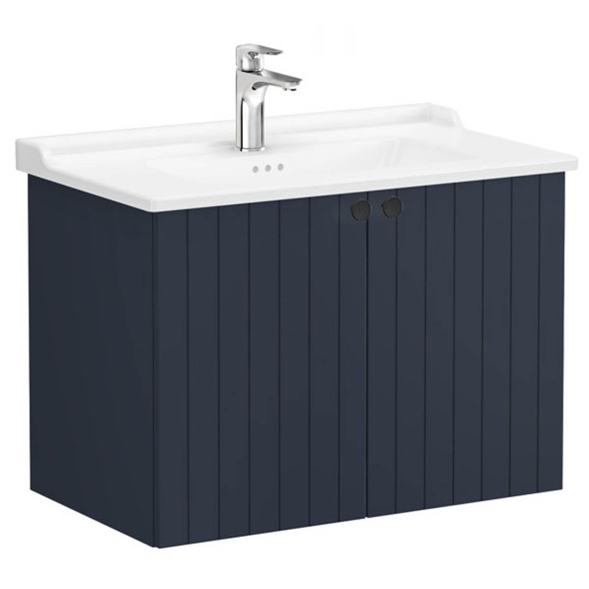 Unitate de baza lavoar baie, cu usi 80cm, mat dark albastru, cu classical lavoar / chiuveta baie | 69301 Matt Dark Blue, Colectia Root Groove Vitra