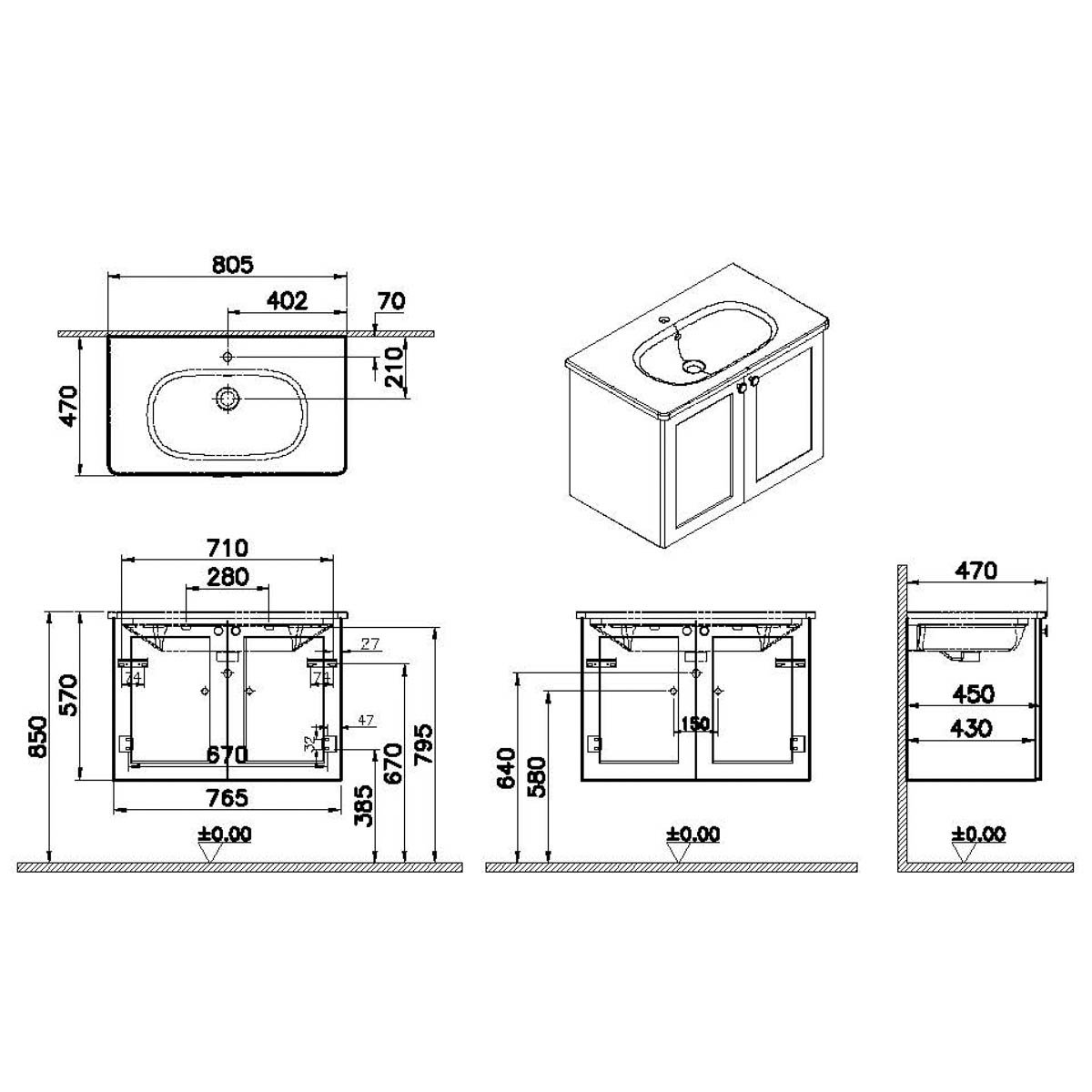 Descriere Calculată 1: Root Classic, Vanity unit, 80 cm,w/doors