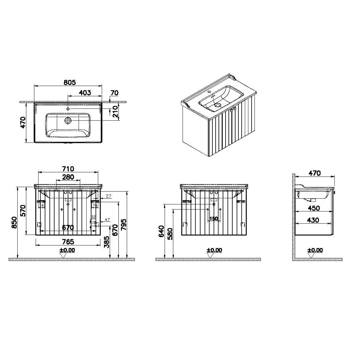 Descriere Calculată 1: Root Groove, Vanity unit, 80 cm,w/doors