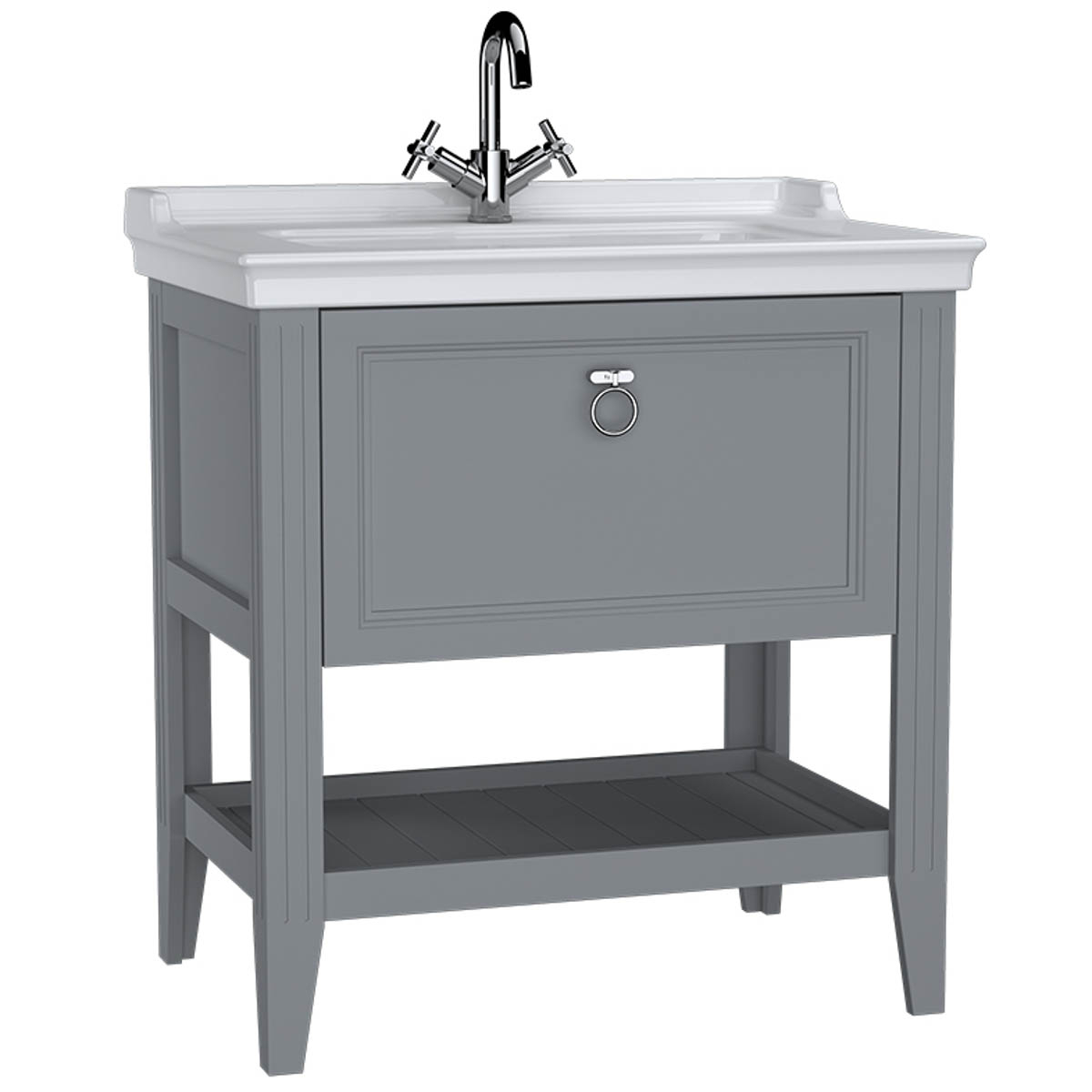 Unitate de baza lavoar baie 80cm, cu drawer, cu vanity lavoar / chiuveta baie cu orificiu baterie, mat grey | 62181 Matte gray, Colectia Valarte Vitra