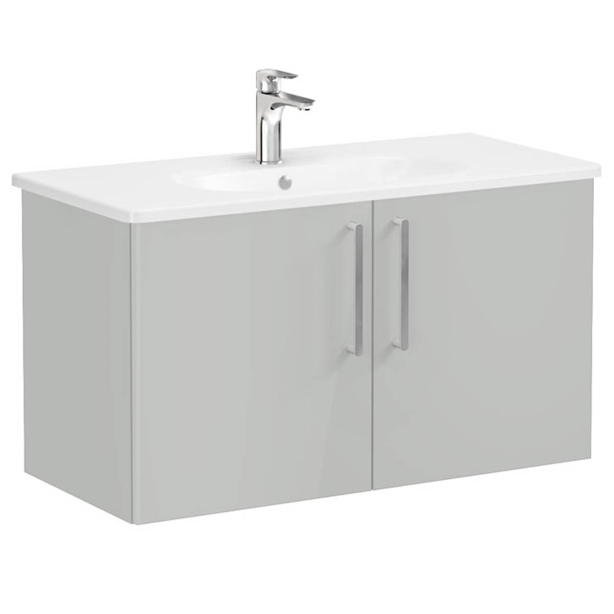 Unitate de baza lavoar baie, cu usi 100cm, inalt gloss pearl grey, cu rounded lavoar / chiuveta baie | 66323 Shiny Pearl Grey, Colectia Root Flat Vitra