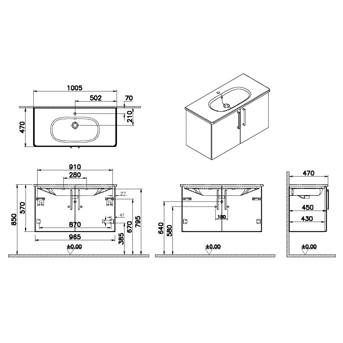 Descriere Calculată 1: Root, Vanity unit, 100 cm,w/doors